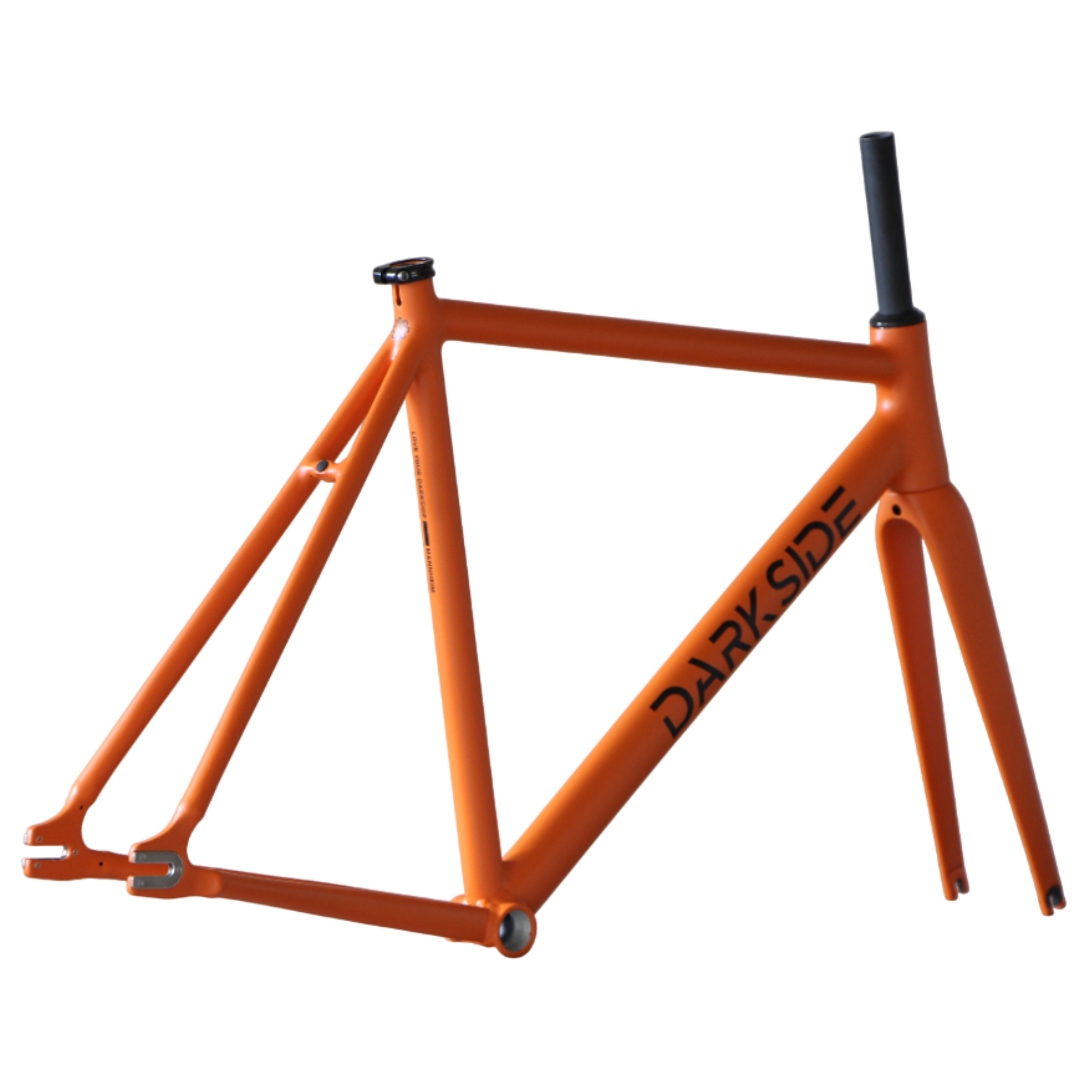 Das DARKSIDE Rahmenset MANNHEIM ist eine echtes Multitalent und erfüllt sowohl die Anforderungen und Wünschen für den urbanen Einsatz wie auch für die Rennstrecke. Zur Gewichtsreduktion ist der Rahmen aus einem dreifach konifizierten 6061-T6 AL Rohrsatz mit geglätteten Schweißnähten gefertigt. Durch die Verwendung von modularen Rahmen-Ports im Oberrohr, kann dein Fixed Gear oder Singlespeed Bike Projekt mit unverwechselbar Cleaner Optik umgesetzt werden. Der kompakte Radstand sorgt für ein agiles und sportliches Fahrverhalten. Das konische Steuerrohr in Verbindung mit dem konischen Gabelschaft sorgt für eine extrem steife Konstruktion. Die Voll Carbon Gabel sieht nicht nur fantastisch aus, sondern bietet eine Reifenfreiheit von bis zu 32mm für Straßenreifen und reduziert zusätzlich noch das Gesamtgewicht. Die Carbon Kappen des konischen Steuersatzes sind ein zusätzlicher Hingucker. Die Rahmenset Farbe "magma orange matt" wird nach Bestellung kundenspezifisch lackiert; für den dadurch individualisierten Rahmen besteht kein Widerrufsrecht. Wenn du ein leichtes, agiles und hochwertigen Rahmenset suchst, bist du hier genau richtig.